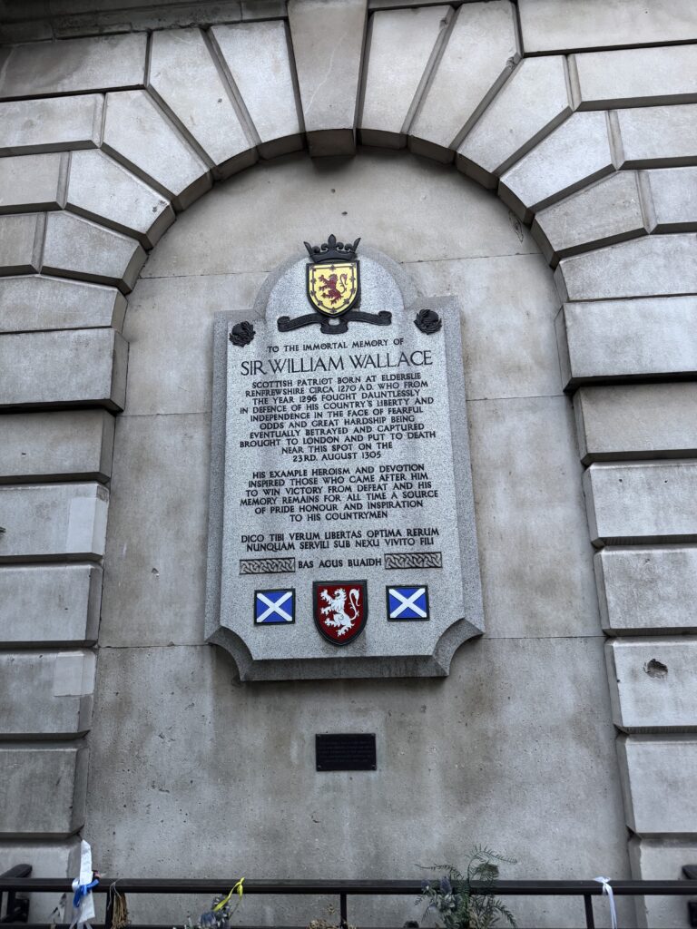 Read the plaque marking the place where Scottish hero Sir William Wallace was executed in Smithfield. His memorial still receives flowers to this day, even centuries after his death in 1305.