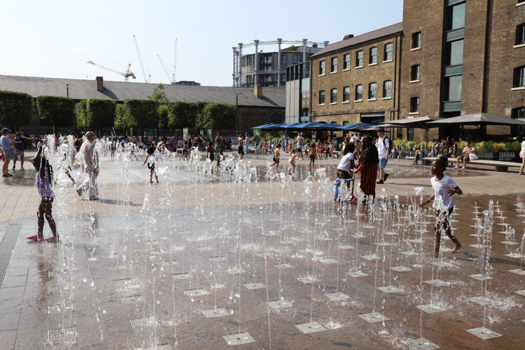 The Granary Square fountains at King’s Cross is open daily and features over a thousand jets that spout water and are illuminated with multicolor lights at night. The choreographed fountains jump and dance while visitors join in on the fun.