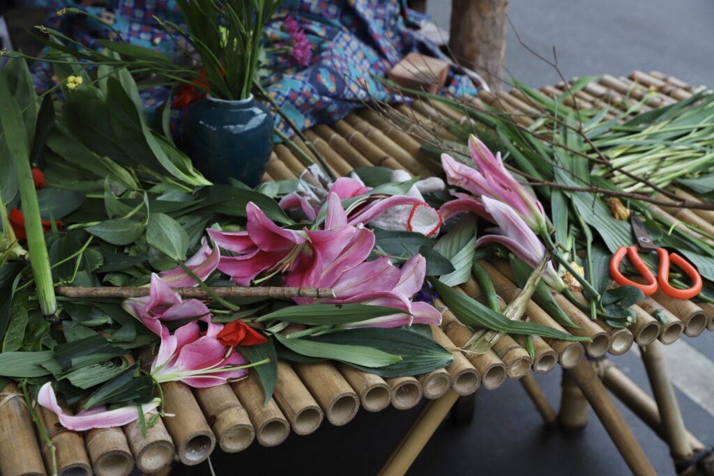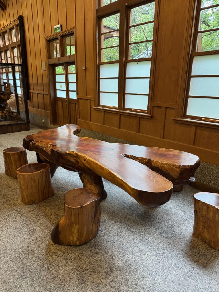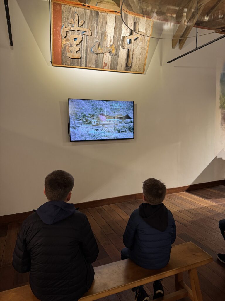 We drive into the mountains to hike and visit Lin Tian Shan Forestry Park. The beautiful mountains and misty and we enjoy a fun walk with Azhou and family. We stop and buy hand carved wood frog drums that sound like croaking frogs. Azhou meets a flower vendor who arranges a bouquet of flowers for her as a gift. We hike, eat dried sour plums, and the kids play on old abandoned railway tracks. My cousin teaches the kids how to eat the stems of clovers. We so visit museums and learn about the history of the former logging village. It was a beautiful day!