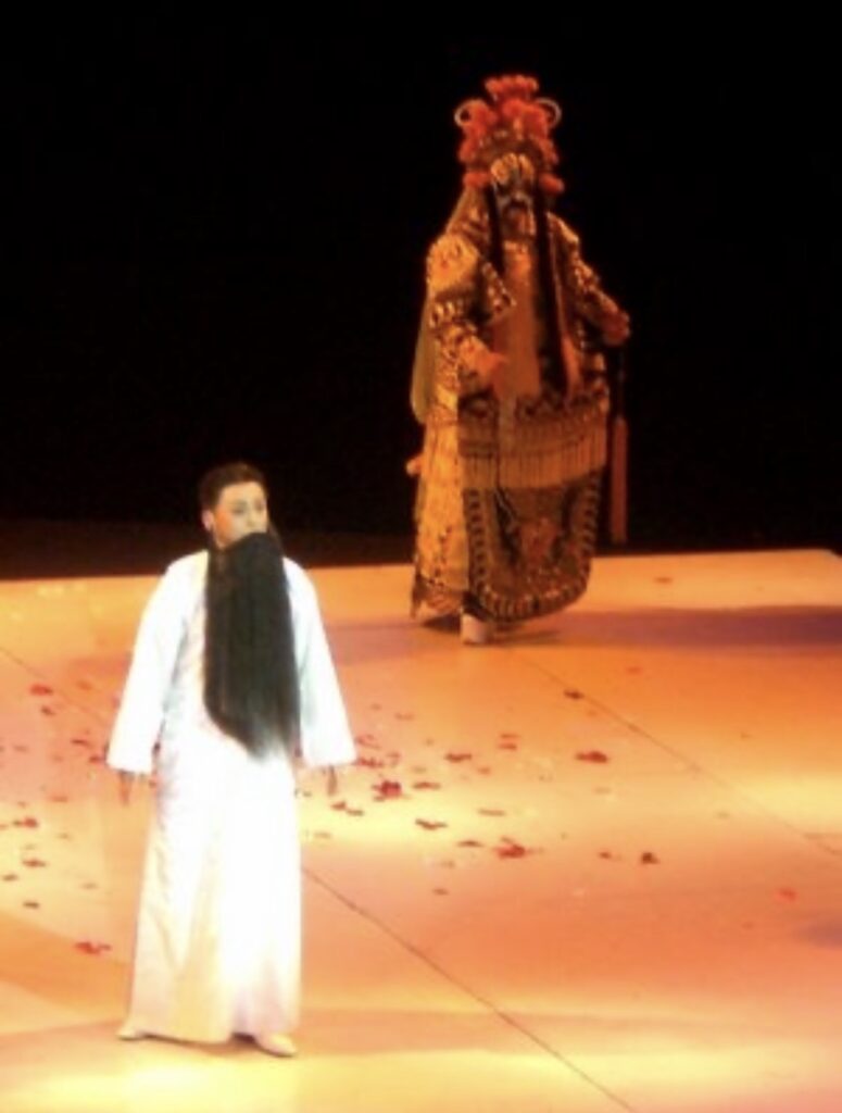 On Friday, Tsing Hua University treated the foreign students to a night at the Bejing Opera at the famous Chang’an Theatre. Beijing Opera (Beijing jingju) is a must see for anyone visiting the capital city. This was my first time to see it! The language is usually sung in archaic Chinese – a mix of classical literary Chinese and vernacular speech. There are electronic scripts running down both sides of the stage to display Chinese text. The orchestra included several Chinese instruments including the erhu, pipes, and traditional Chinese percussions. Tonight’s opera was the story of Mei Langfang who was one of China’s great masters of the dramatic arts. Mei Langfang was the first to introduce Beijing Opera to the world. During the war with Japan and especially after the attack on Nanjing he made strong political statements by creating and staging patriotic operas such as Mulan Joins the Army.