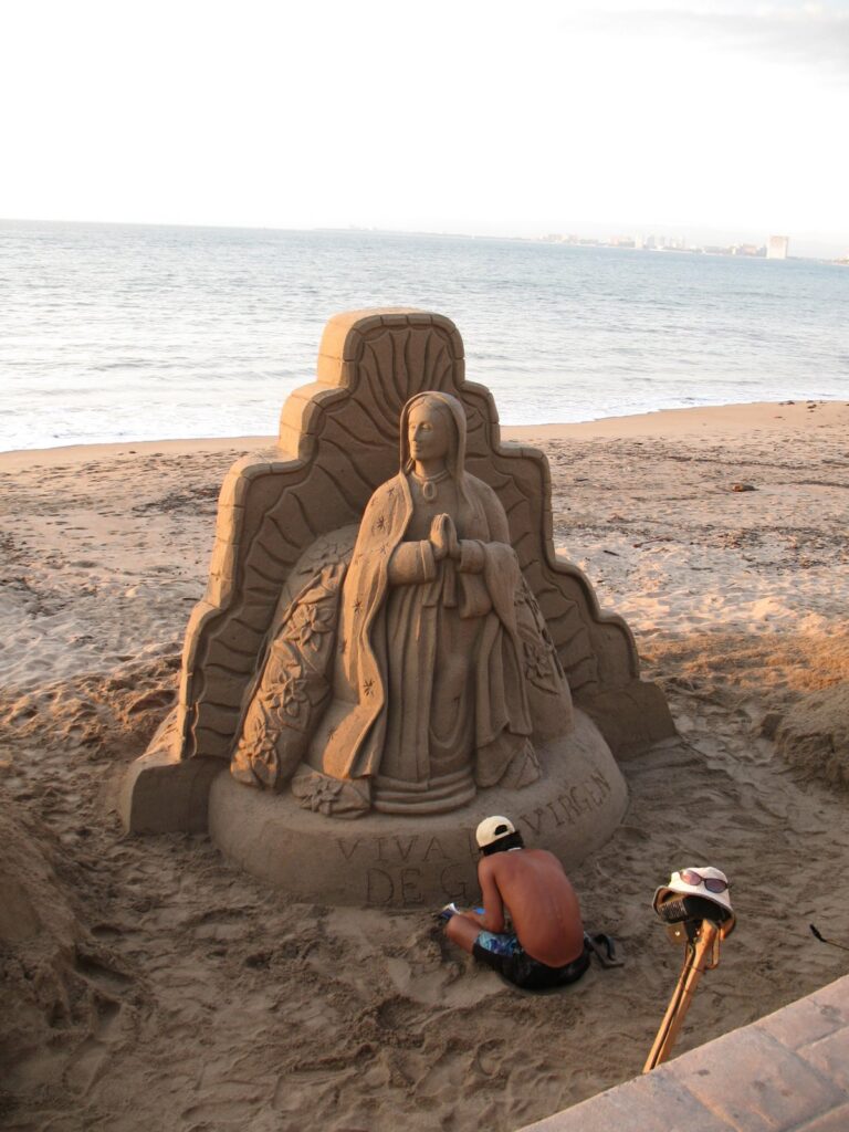 Our final day in Puerto Vallarta was a free day. We had no appointments and could spend the day doing anything we pleased. I enjoyed eating tortilla chips and fresh guacamole, coconut ice cream and frozen lemonades. I also loved laying out on the beach, drinking Miami Vices (sans alcohol) and swimming in the beautiful pool. We watched friends parasailing for the first time ever and it was incredible! In the evening we headed to downtown Puerto Vallarta for shopping on its famous boardwalk. We were there just in time to see a beautiful sunset, amazing sand sculptures and to witness a parade in honor of Our Lady of Guadalupe Day.